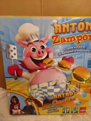 Juego de mesa Antón Zampón, también conocido como Antro Comilão. ¡Un divertido juego para toda la familia! - Figura de cerdo chef. - Incluye instrucciones. - Para edades de 4 años en adelante.
