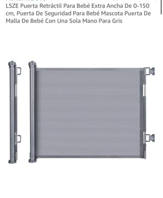 Puerta de seguridad retráctil, ideal para bebés y mascotas. Su diseño permite una instalación y retirada sencillas. - Color gris. - Ancho ajustable de 0 a 150 cm. - Fabricada en malla resistente.