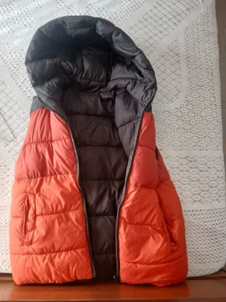 Chalecos Mayoral uno reversible gris o naranja otro rojo, talla 8