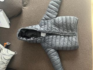 Chaqueta acolchada para niño, ideal para mantener el calor. - Diseño bicolor: parte superior azul marino y parte inferior gris jaspeado. - Capucha integrada. - Cierre de cremallera frontal. - Bolsillos laterales con cremallera. - Talla 14-15. 170cm - Marca Primark.