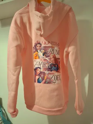 Sudadera con estampado de K-Pop. - Color rosa. - Talla 9-10 años. - Diseño con personajes y logo 'HUNTRAX'. (Me equivoqué de talla al pedirlo y no lo puedo cambiar)