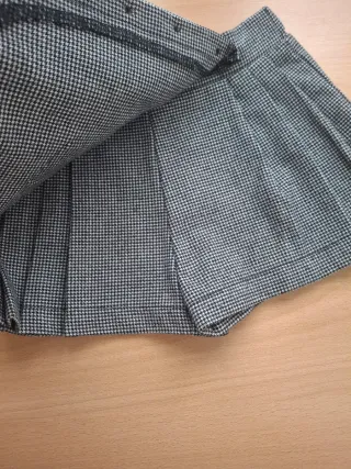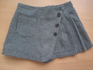 Preciosa falda-pantalón para niña de 3 años con estampado de pata de gallo. - Diseño con botones decorativos. - Bolsillo lateral. - Tejido cómodo y resistente.