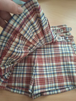 Preciosa falda-pantalón con estampado de cuadros, ideal para niñas de 2 a 3 años.(TALLA GRANDRE). -Combina comodidad y estilo. - Diseño de cuadros en tonos rojos, beige y azul. - Cintura con detalle de hebillas. - Pliegues decorativos.