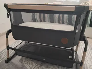 Cuna Maxicosi en perfecto estado, ideal para los primeros meses del bebé. Su diseño moderno y funcional la hace perfecta para cualquier hogar. - Estructura de madera y tejido transpirable. - Incluye 2 colchónes . - incluye bolsa de transportar plegado y 2 arnes para sujetar con colchon de cama si se desea. - Base inferior para almacenamiento.
