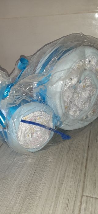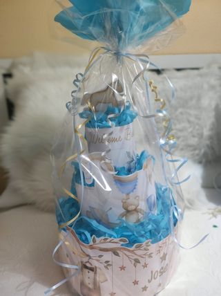 Regalo personalizado para bebe. Se hacen tartas de pañales y lo que le quieras poner, cajas segun presupuesto.
