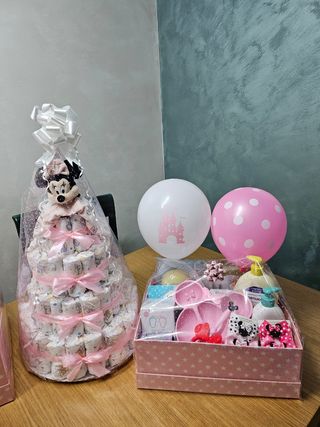 Se realizan todo tipo de tartas de pañales ,cestas,cajas con productos de bebe...