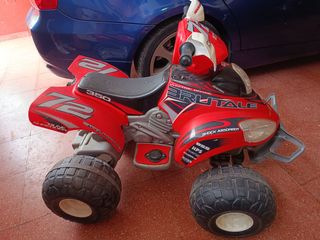 Quad eléctrico infantil Feber, modelo Brutale 350. Está en buen estado, con algunos signos de uso. - Modelo: Brutale 350 - Marca: Feber - Color: Rojo - Incluye luces delanteras