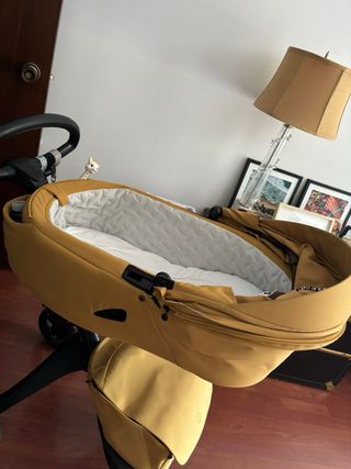 DISPONIBLE EN MADRID, ZONA LAS TABLAS Capazo Stokke Xplory X color mostaza, con solo 3 meses de poco uso (tenemos 2 carritos). Tiene su caja y garantía. La capota no está incluida. El capazo nuevo cuesta 269€.