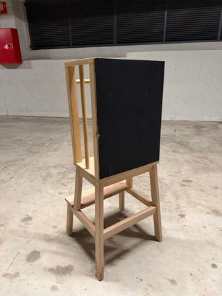 Alzador infantil de madera con pizarra incorporada. Ideal para que los más pequeños puedan alcanzar la mesa o para dibujar. - Fabricado en madera. - Incluye pizarra negra.