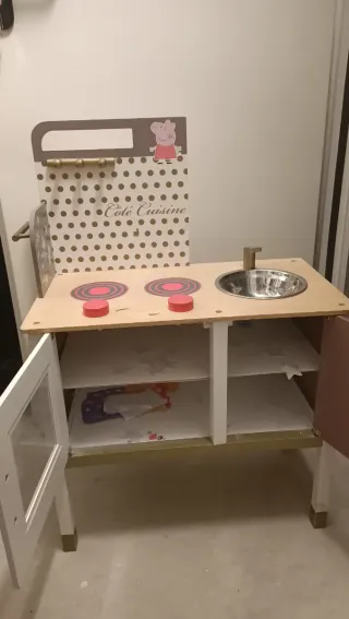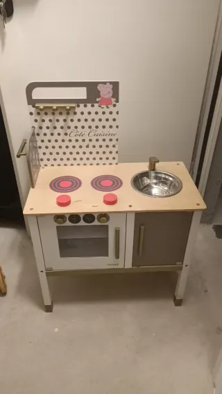Divertida cocina de juguete de madera con diseño de Peppa Pig. Ideal para los más pequeños. - Incluye fregadero, fogones y horno. - Puerta del horno con ventana. - Pomo giratorio para el horno. - Pomo giratorio para los fogones.