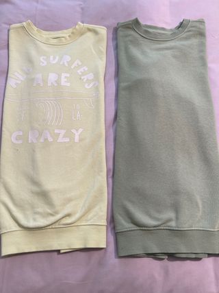 Lote de dos sudaderas cómodas y versátiles. - Una sudadera de color amarillo pálido con estampado gráfico. - Una sudadera de color verde menta liso.