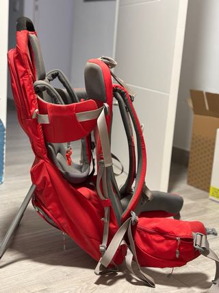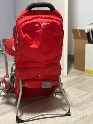 Mochila portabebés de la marca Vaude, ideal para excursiones y actividades al aire libre. - Color rojo. - Estructura metálica. - Asas y cintas de ajuste.
