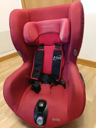 Silla de coche color rojo, marca Bebeconfort modelo Axis. - Sistema de arnés de 5 puntos. - Reposacabezas ajustable. - Funda extraíble y lavable. Gira para poder colocar mejor al niño. Sin isofix