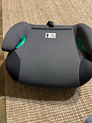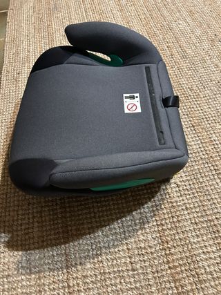 Elevador de coche para niños, diseñado para ofrecer comodidad y seguridad. - Color gris oscuro con detalles en verde. - Funda extraíble y lavable. - Homologado según normativa europea.
