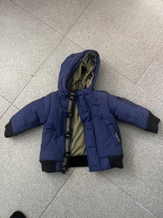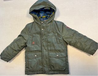 Parka infantil de la marca Jacadi. - Color verde. - Forro interior blanco acolchado. - Capucha con forro interior azul marino.