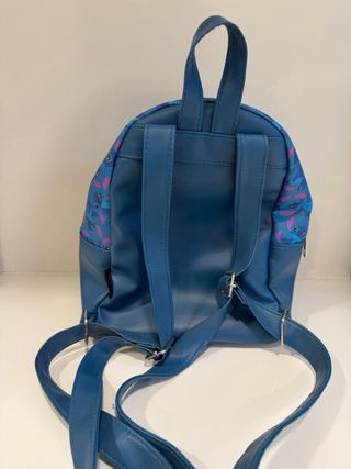 Mochila con estampado de Stitch, personaje de Lilo & Stitch. Material: estilo cuero - Diseño con múltiples figuras de Stitch. - Bolsillo frontal con cremallera. - Tamaño: 25cm alto, 22,5cm ancho - pequeña rasca en bolso frontal (ultima foto)
