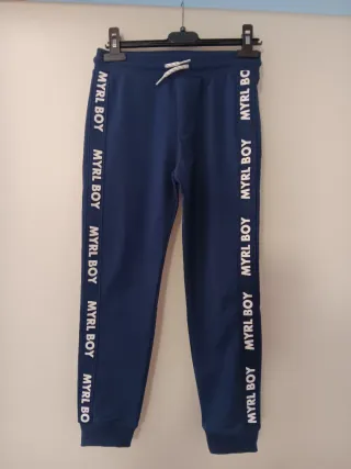 Pantalón de chándal para niño con detalle de logo en el lateral de color azul y otro liso gris. - Cintura elástica con cordón. - Nuevos sin usar. - Se venden juntos.