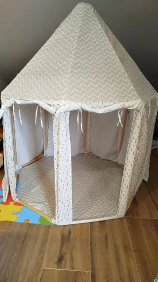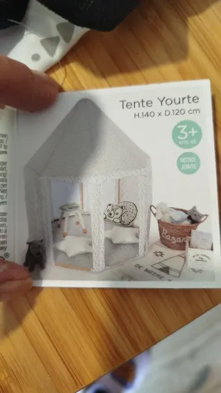 Tienda de campaña tipo yurt para niños, ideal para jugar en interiores. Fácil de montar y desmontar. - Dimensiones: Alto 140 cm x Diámetro 120 cm. - Edad recomendada: 3+ años. - Incluye instrucciones de montaje.