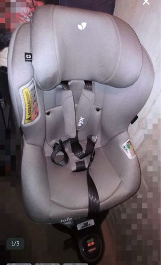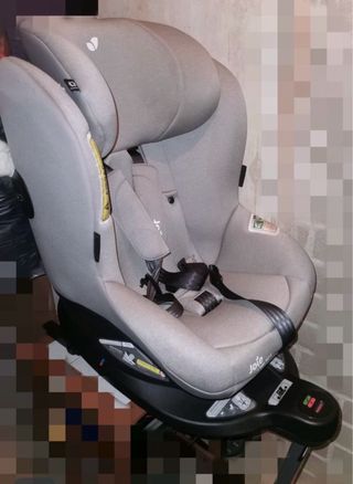 Silla de coche para bebé de la marca Joie 360,con sistema de anclaje Isofix. Es cómoda y segura. - Color gris. - Incluye arnés de seguridad de 5 puntos. - Base giratoria No tiene adaptador para bebés, ya que venía aparte.