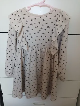Vestido de invierno para niña de la marca Zara, talla 4-5 años. - Diseño con estampado floral. - Mangas largas. - Volantes decorativos en la parte delantera.