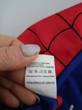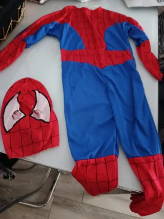 Disfraz de Spiderman para niño, talla 8 años aproximadamente. Incluye el traje completo y la máscara. - Diseño clásico de Spiderman. - Colores rojo y azul. - Estampado de telaraña. La araña esta echa de goma eva ya que no venia