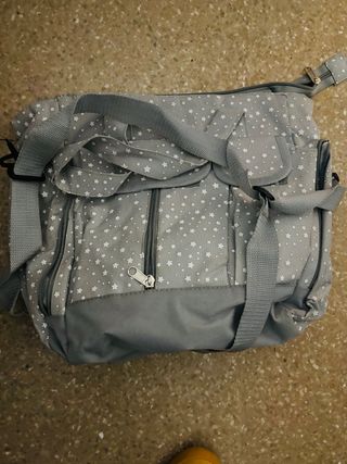 Bolso para carro de bebé con un bonito estampado de estrellas grises. - Diseño con múltiples compartimentos. - Cierre de cremallera. - Correas ajustables.