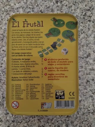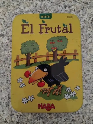 Juego de mesa El Frutal en su versión mini de la marca HABA. Ideal para llevar a cualquier parte. - Ilustración de un cuervo con cerezas. - Diseño colorido y divertido.