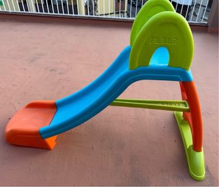 Tobogán infantil de la marca Feber, perfecto para que los más pequeños disfruten al aire libre. Su diseño colorido y resistente lo hace ideal para el jardín o patio. - Color azul, naranja y verde. - Fabricado en plástico. - Estructura estable.