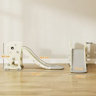 Tobogán infantil de 3 funciones en 1, diseñado para los más pequeños. - Estructura de plástico resistente. - Colores pastel. - Ideal para uso interior y exterior.