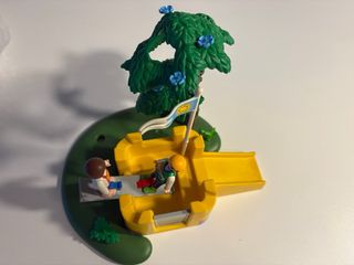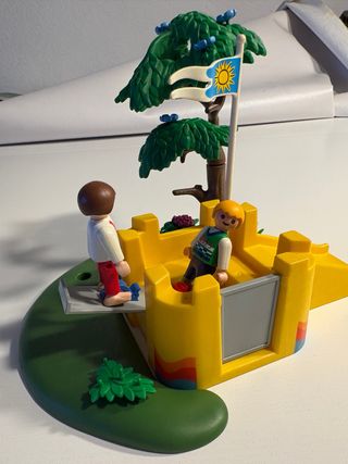 Set de juego Playmobil 3235 Tobogán. Incluye figuras y accesorios. - con forma de Castillo amarillo con detalles de colores. - Árbol verde con pájaros y bandera. - Dos figuras de Playmobil.