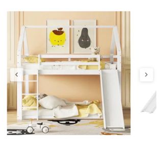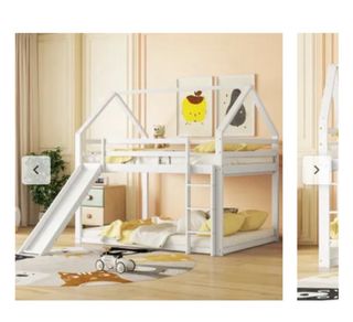 Litera infantil de madera con tobogán, ideal para habitaciones de niños. - Estructura de madera blanca. - Incluye tobogán. - Medidas de 140 cm x 200 cm.