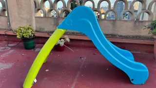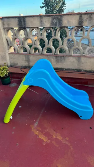 Vendo este tobogán infantil, ideal para niños pequeños. Está nuevo (1 semana de uso) y es muy divertido. - Color azul y verde. - Material plástico resistente. - Fácil de montar y desmontar.
