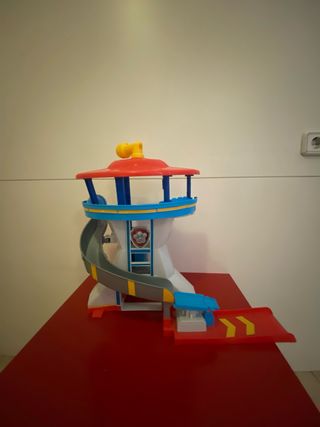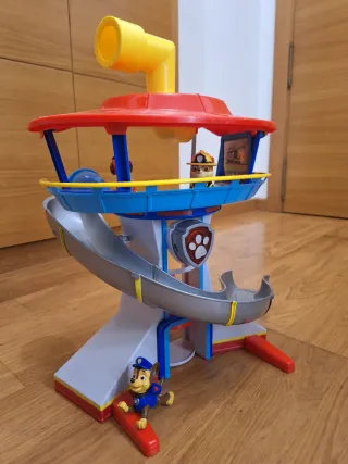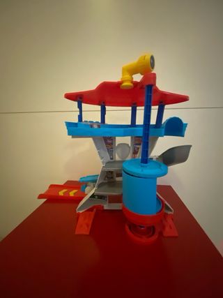 Torre de vigilancia de la Patrulla Canina con tobogán y rampa. - Diseño inspirado en la serie. - Colores vivos: rojo, azul, gris y amarillo. - Incluye base de aterrizaje.