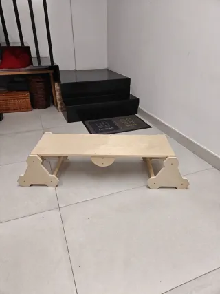 Se vende conjunto de triángulo Pikler con escalera y tobogán. - Estructura de madera. - Escalera con peldaños. - Tobogán con detalles de colores: azul, rojo, naranja, amarillo y verde.