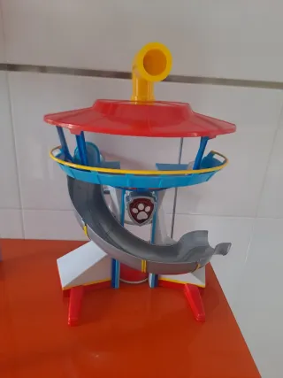 Centro de control de la Patrulla Canina con tobogán y plataforma de lanzamiento. En perfecto estado apenas utilizado. - Diseño inspirado en la serie. - Colores rojo, azul y gris. - Incluye tobogán. - Plataforma de lanzamiento.