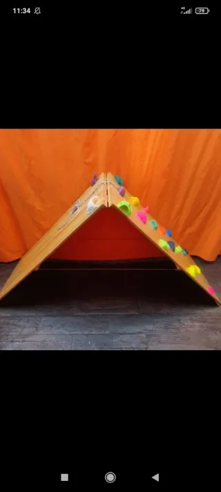 Se vende triángulo de escalada para niñ@s con tobogán. Está nuevo! Es perfecto para que los más pequeños se diviertan y desarrollen sus habilidades motoras. Ideal para el desarrollo de la motricidad. - Incluye triángulo de escalada y tobogán. - Material de madera. - Diseño sencillo y funcional. - Ideal para uso domestico. - Medidas: 91,5 cm (largo) x 80,5 cm (alto) x 45 cm (ancho).