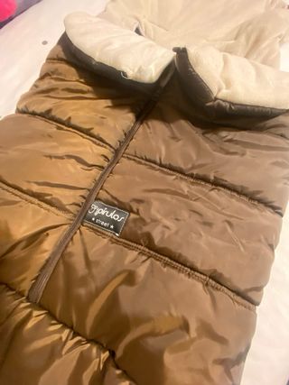 Saco acolchado para silla de paseo o carrito de bebé, ideal para mantener al pequeño abrigado. - Color marrón y beige. - Interior suave y cálido. - Aberturas para arnés. ENTREGA EN TOLEDO E ILLESCAS