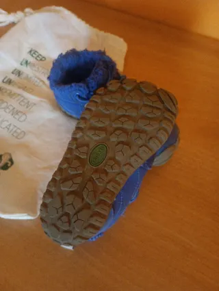 Menorquinas S'Avarca de piel azul, talla 36. Suela blanca alta.