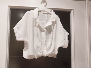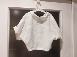 Top de Zara blanco con rayas azules. Talla 6-7 añso (120 cm).