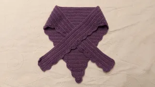 Preciosa toquilla tejida a mano, perfecta para abrigar a las más pequeñas. Su diseño artesanal la hace única. Para niña de 4 a 5 años - Color morado. - Tejido de punto. - Adorno de ondas en los bordes. -Medidas aproximadas son 120 cm de lado a lado y 42 cm de arriba a abajo.