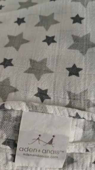 Manta de muselina Aden+Anais con estampado de estrellas grises y blancas. Es suave y transpirable. - Tejido de muselina de algodón. - Diseño de estrellas. - Marca: Aden+Anais.