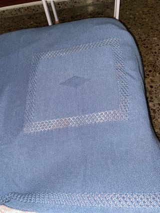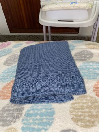 Preciosa toquilla de punto en color azul bebé, totalmente nueva sin uso. ✨ Tejido suave y gustoso ✨ Ideal para entretiempo ✨ Perfecta para carrito, capazo, cuna o para llevar al bebé en brazos ✨ Detalle central con lazada blanca muy delicada Color azul bebé muy fino y combinable. 📏 Medidas aproximadas: 100 x 90 cm aprox. 🆕 Estado: Nueva a estrenar En mi perfil hay más cositas de bebé 😊 Descuento por lote activado. Preciosa toquilla de bebé en color azul, ideal para los más pequeños. Es suave y delicada. - Nueva a estrenar. - Diseño con pequeños detalles calados.