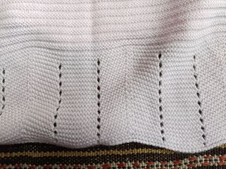 Preciosa toquilla de bebé tejida en punto blanco, con un delicado diseño. - Tejido suave y ligero. - Adorno de puntilla en los bordes. - Diseño con motivos de rombos.