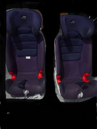 Silla de coche Britax Römer en color morado. Diseñada para la seguridad y comodidad de los más pequeños. - Reposacabezas ajustable. - Acolchado en asiento y respaldo. - Sistema de sujeción seguro. - 9-36 kg. Tengo 2 unidades, se venden juntas o separadas por 50€ cada una.