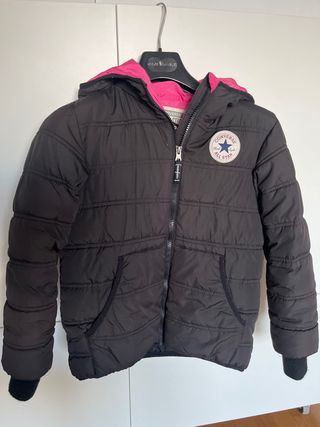 Anorak acolchado de Converse All Star en color negro y forro interior rosa. - Capucha. - Cierre de cremallera. - Bolsillos laterales.