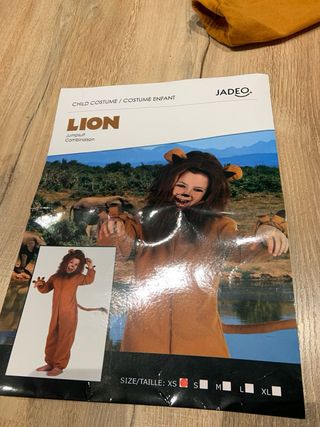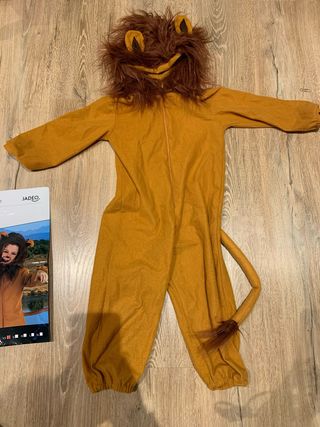 Disfraz de león para niño, talla 2-3 años. Se encuentra en muy buen estado. - Diseño de mono completo. - Capucha con melena y orejas de león. - Cola incorporada.