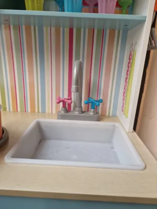 Divertida cocinita de juguete con varios accesorios para horas de juego. - Incluye accesorios como platos, cubiertos, sartén y más. - Diseño colorido y atractivo. - Ideal para fomentar la imaginación.