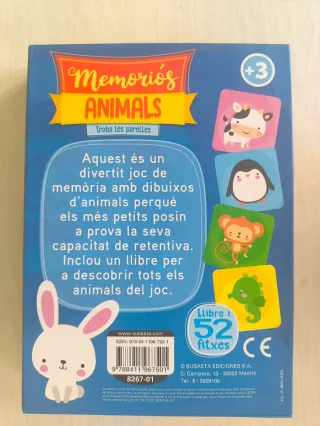 Juego de memoria Memorios Animals de Susaeta. Incluye 52 fichas para encontrar parejas. - Ilustraciones de animales. - Diseñado para niños a partir de 3 años.