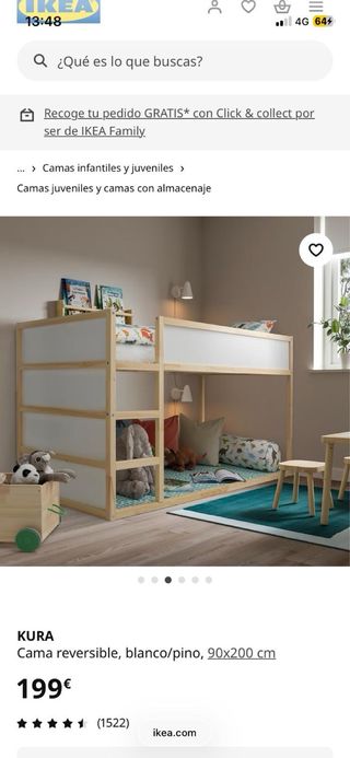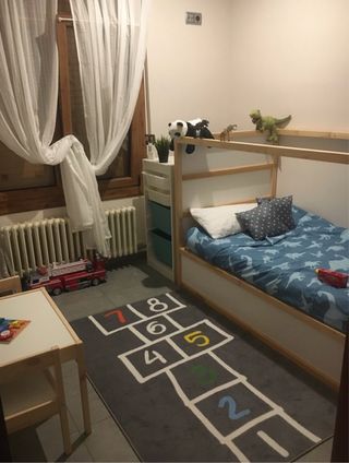Cama infantil de madera de Ikea, ideal para habitaciones de niños y niñas. - Estructura de madera clara. - Diseño sencillo y funcional.