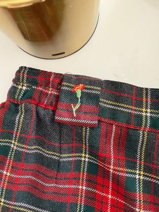 Falda de uniforme escolar con estampado de cuadros escoceses en tonos rojo, verde y gris. Impecables - Diseño clásico de cuadros. - Disponible en tallas T2, T3 y T12 (ésta lleva cremallera lateral) 18€/unidad